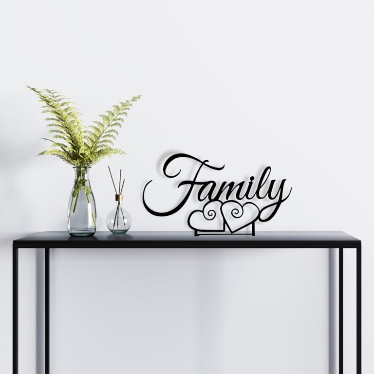 Family Sign with Hearts Stand