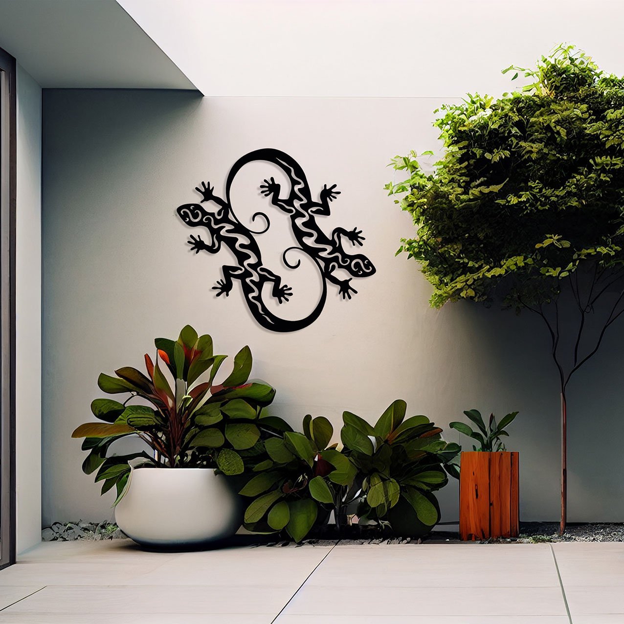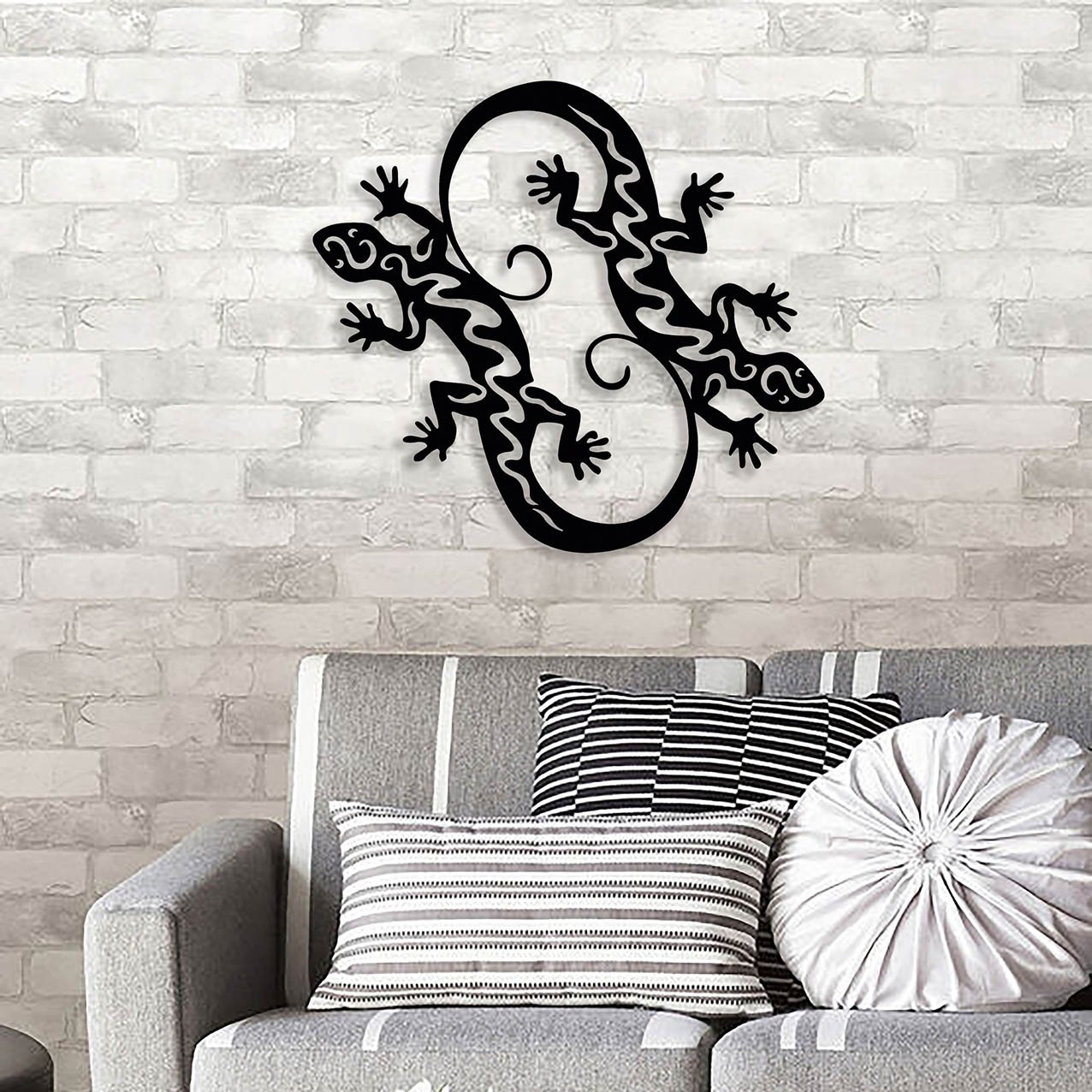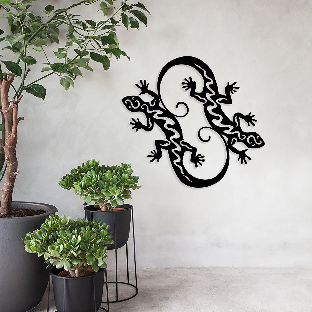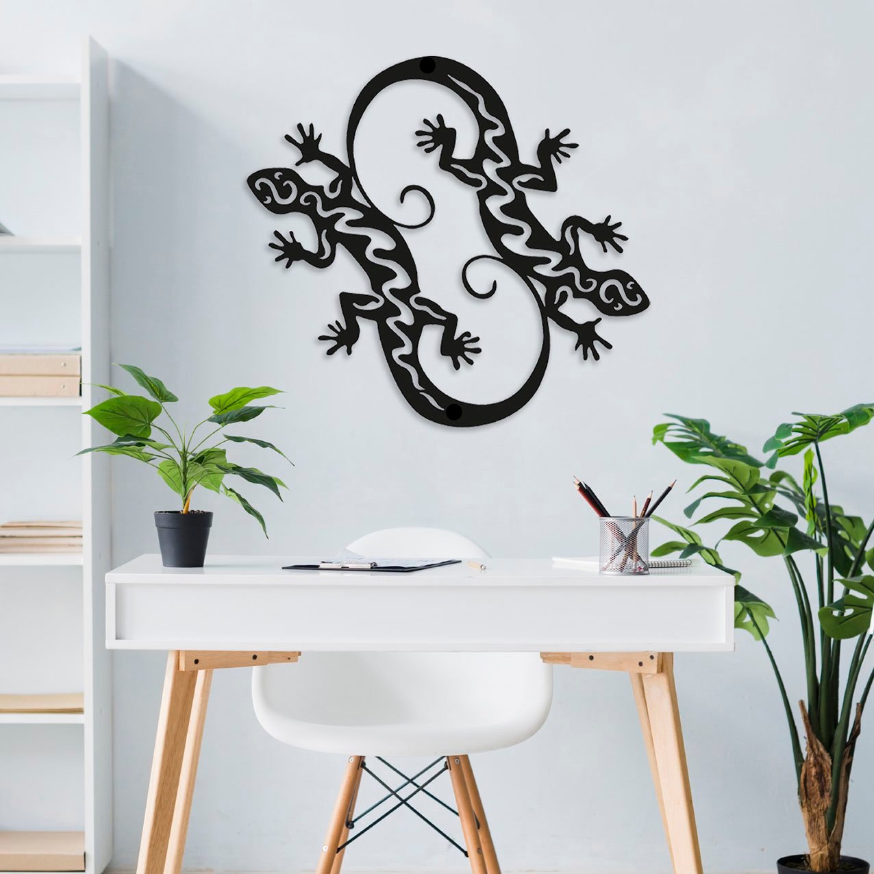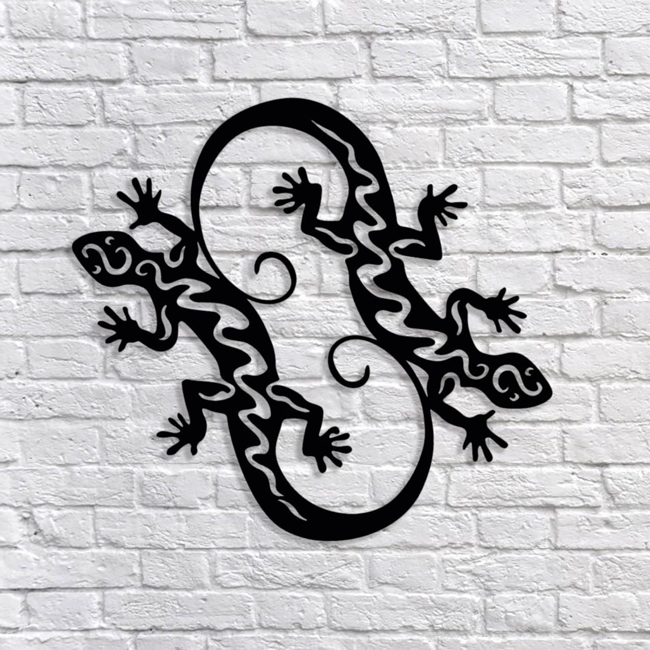 עיצוב קיר נפלא ממתכת של זוג לטאות! העיצוב עדין ומיוחד שבעזרתו תוכל להעניק לביתך או למשרדך מראה מודרני,