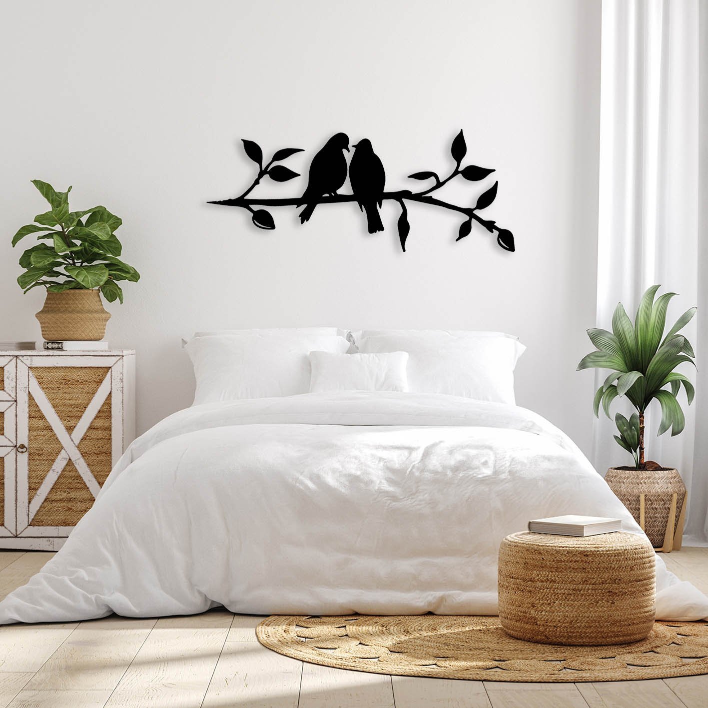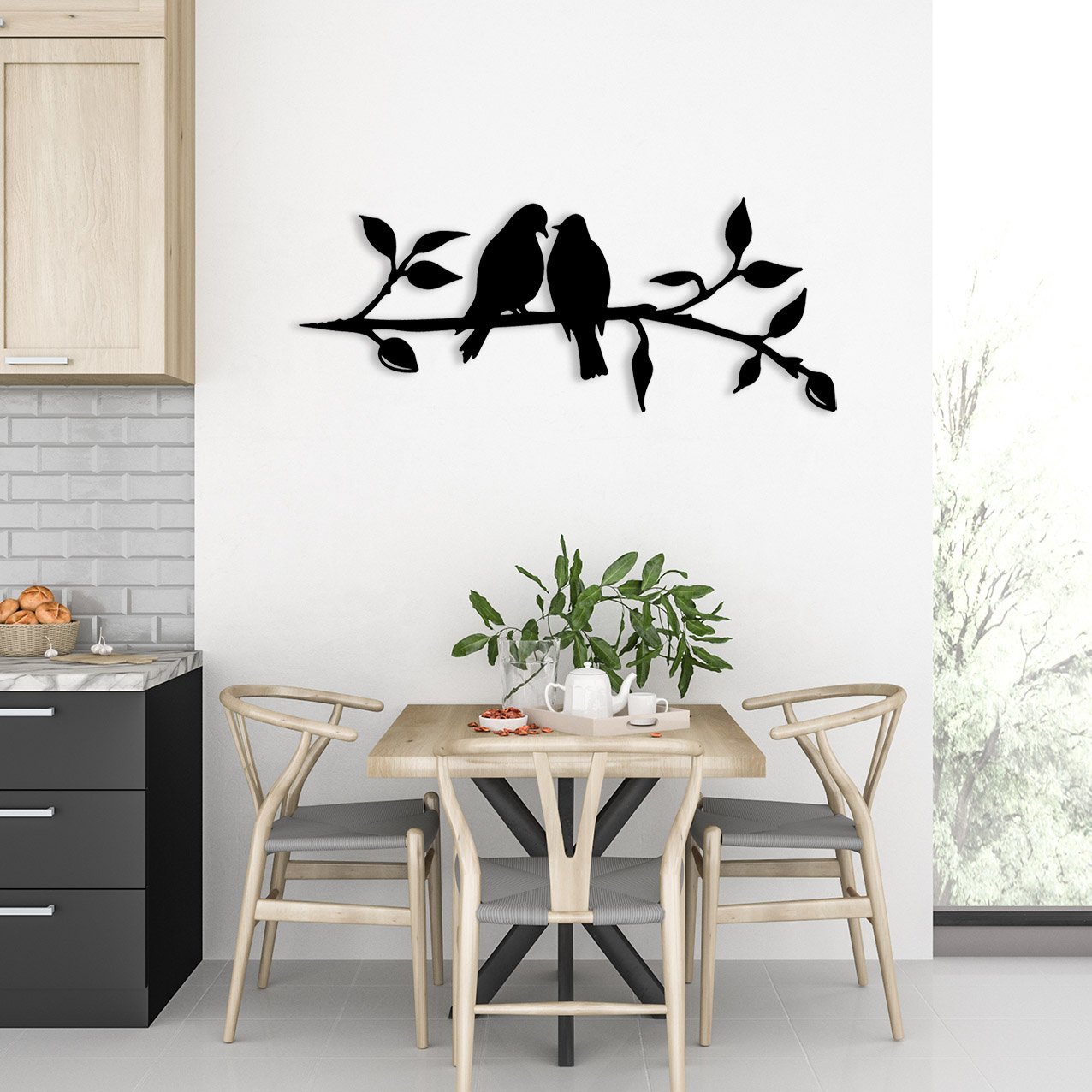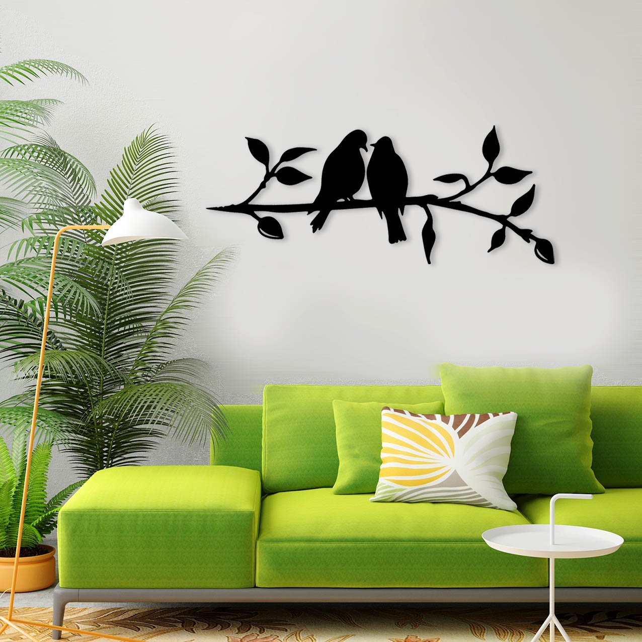 עיצוב קיר נפלא ממתכת של זוג ציפורי אהבה על ענף!