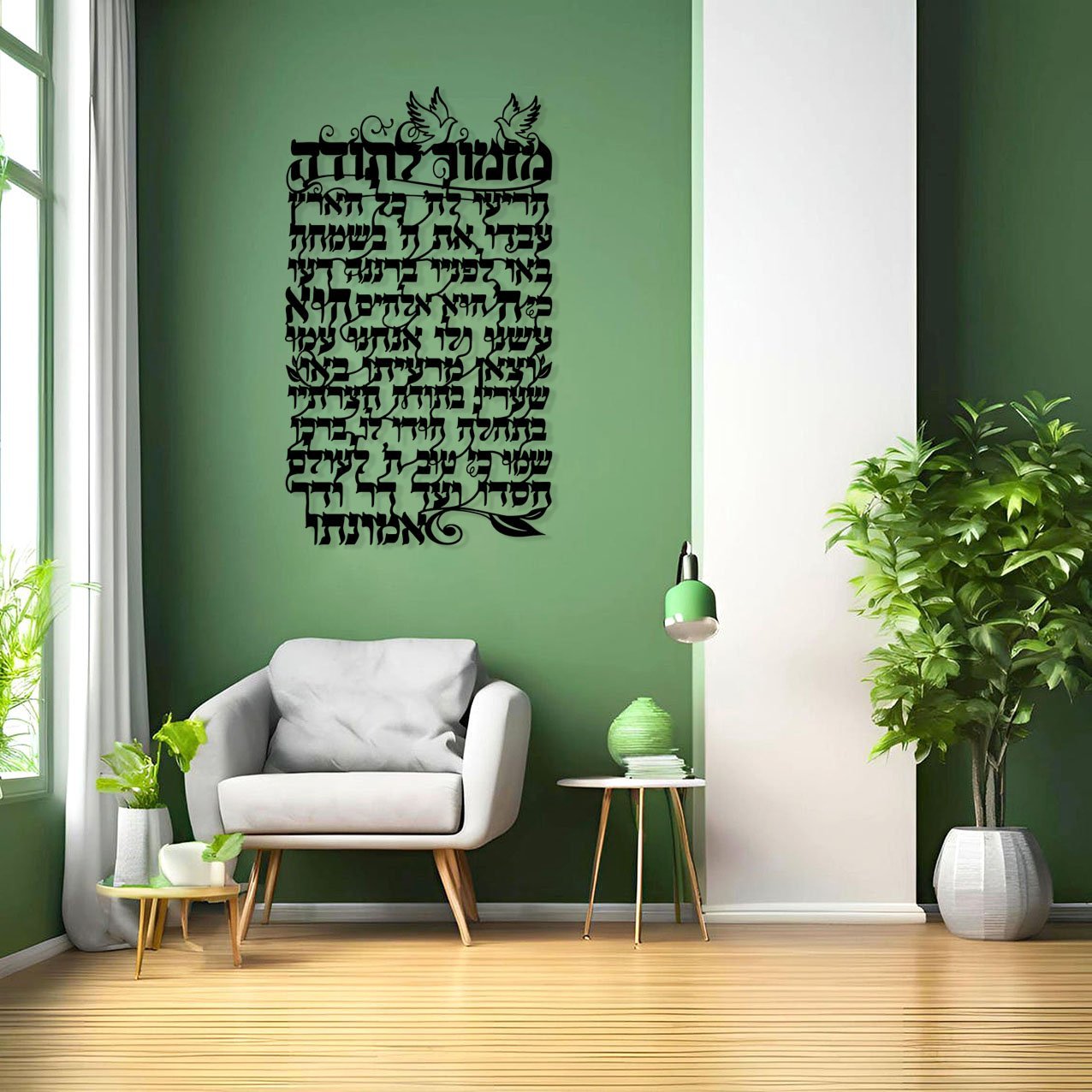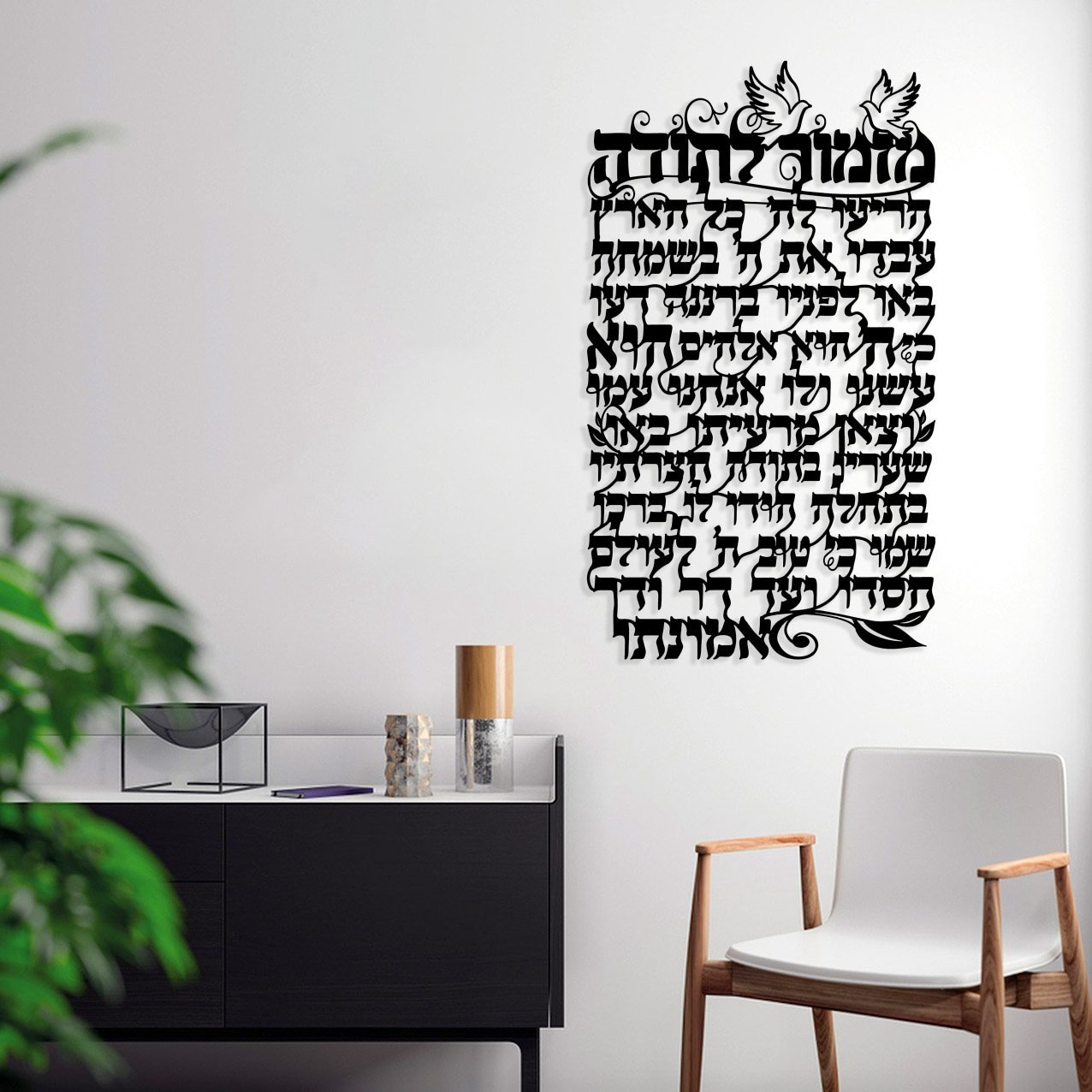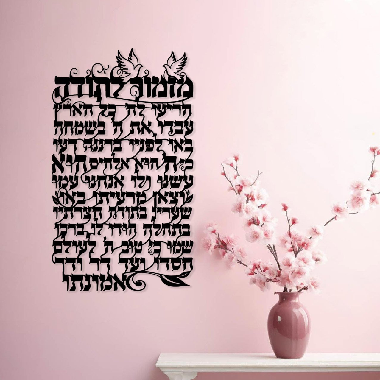אומנות קיר ממתכת מזמור לתודה דגם אנכי