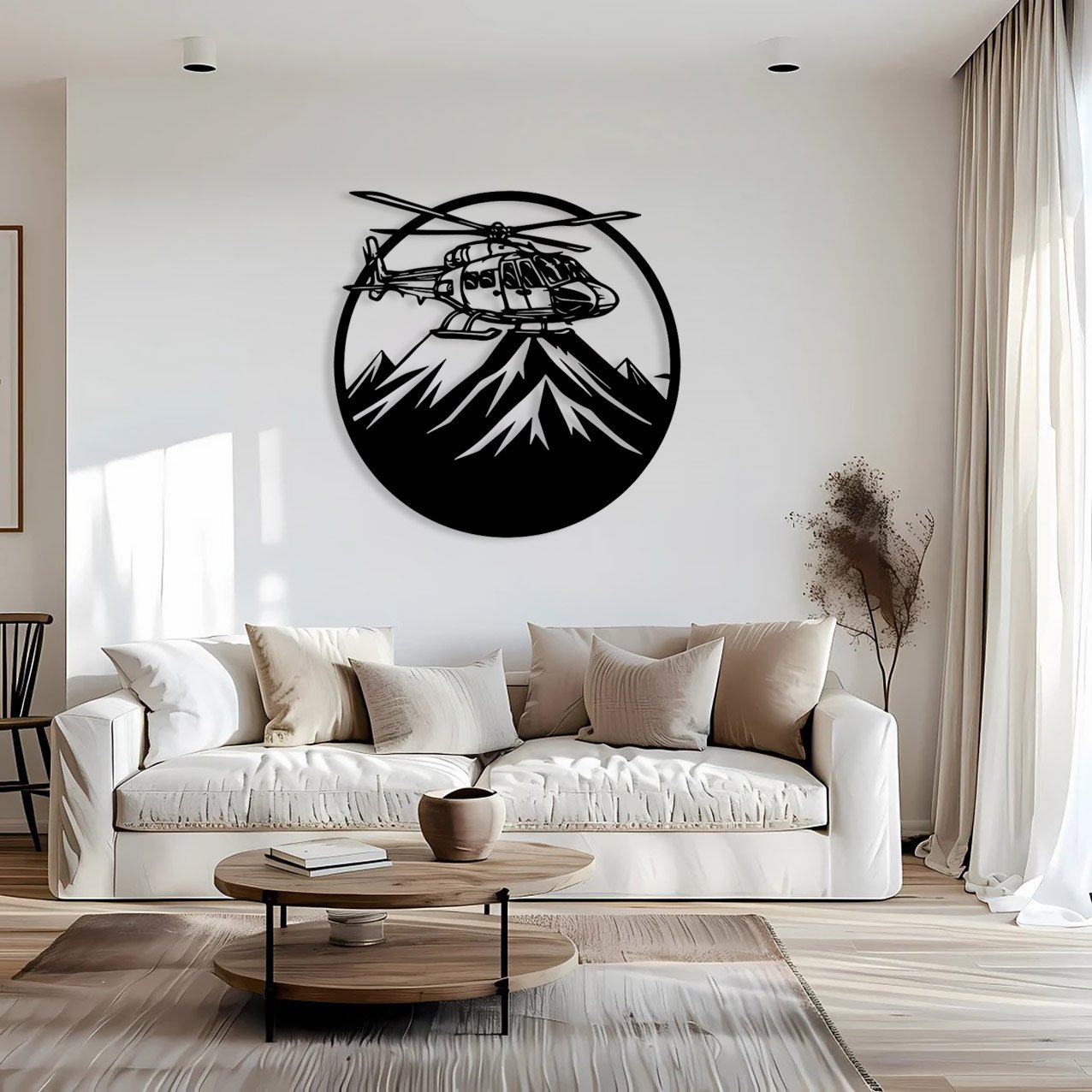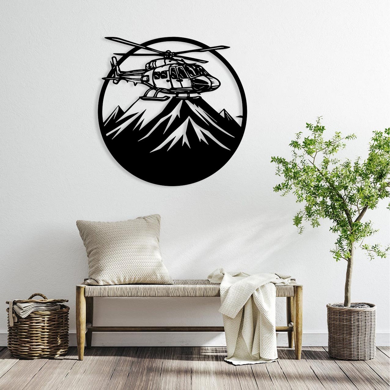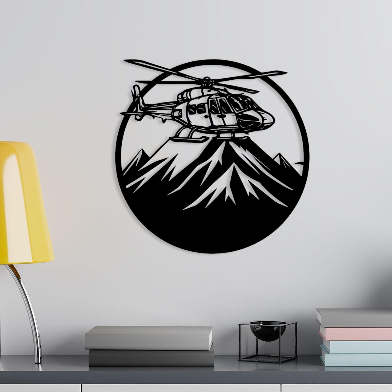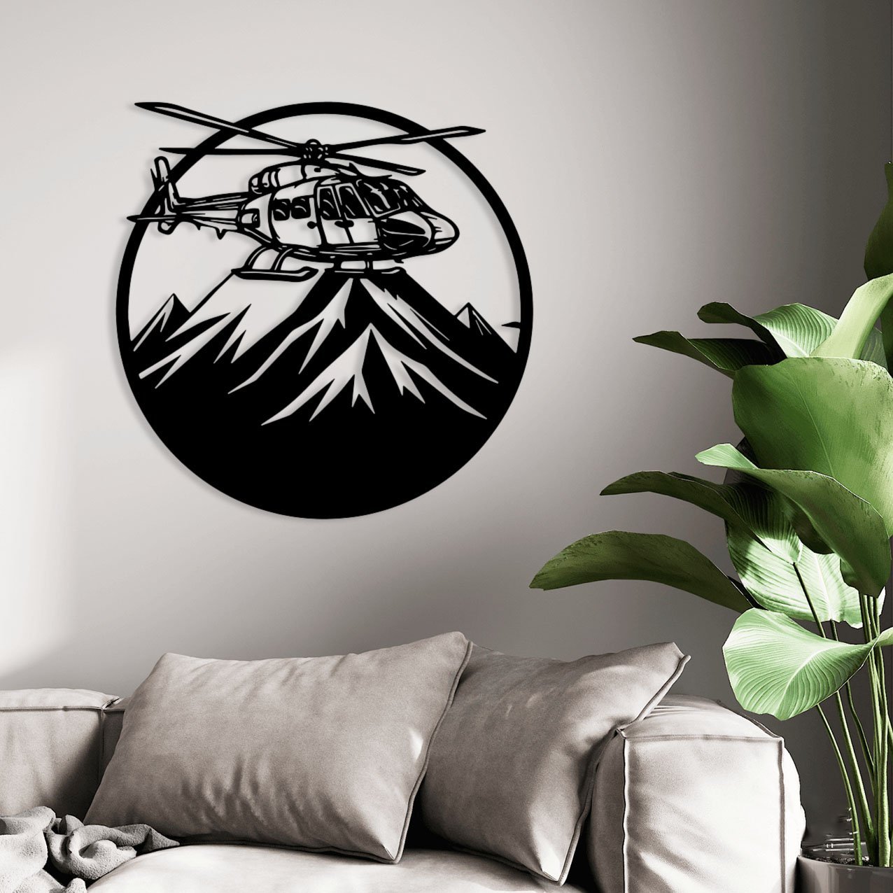 עיצוב קיר נפלא ממתכת של מסוק מעל ההרים!