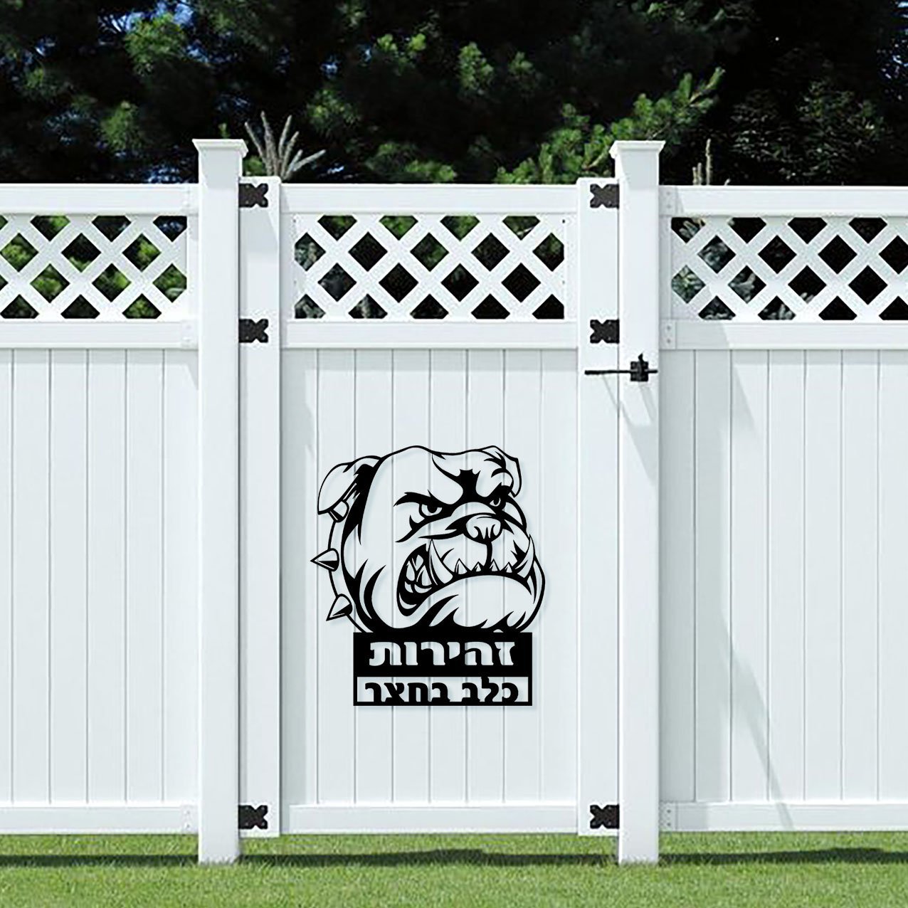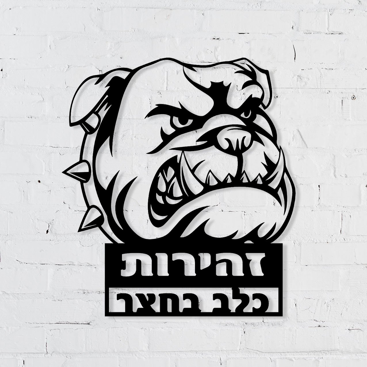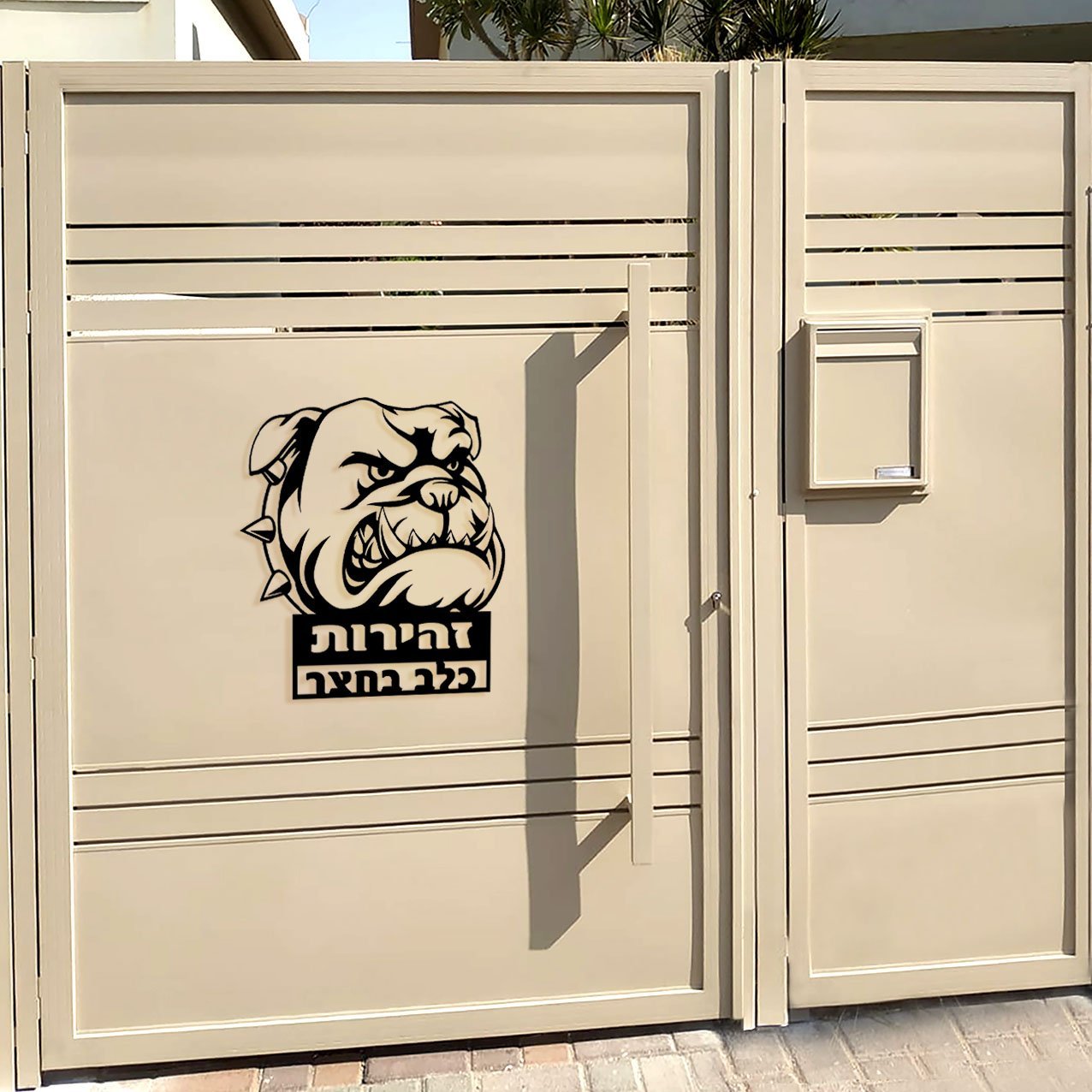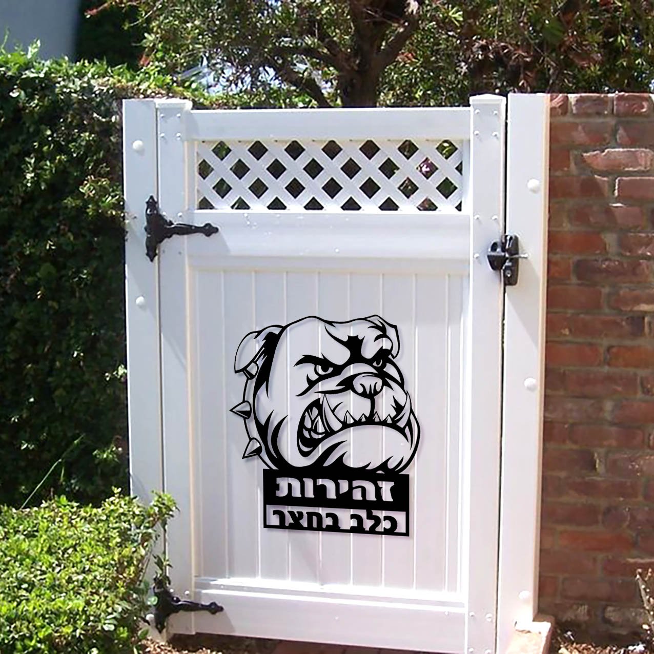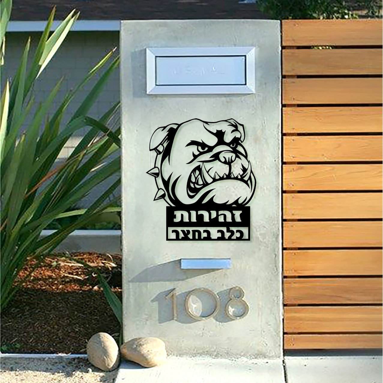עיצוב חוץ מיוחד ממתכת עם השלט כלב בחצר עם דמות של כלב בולדוג!
