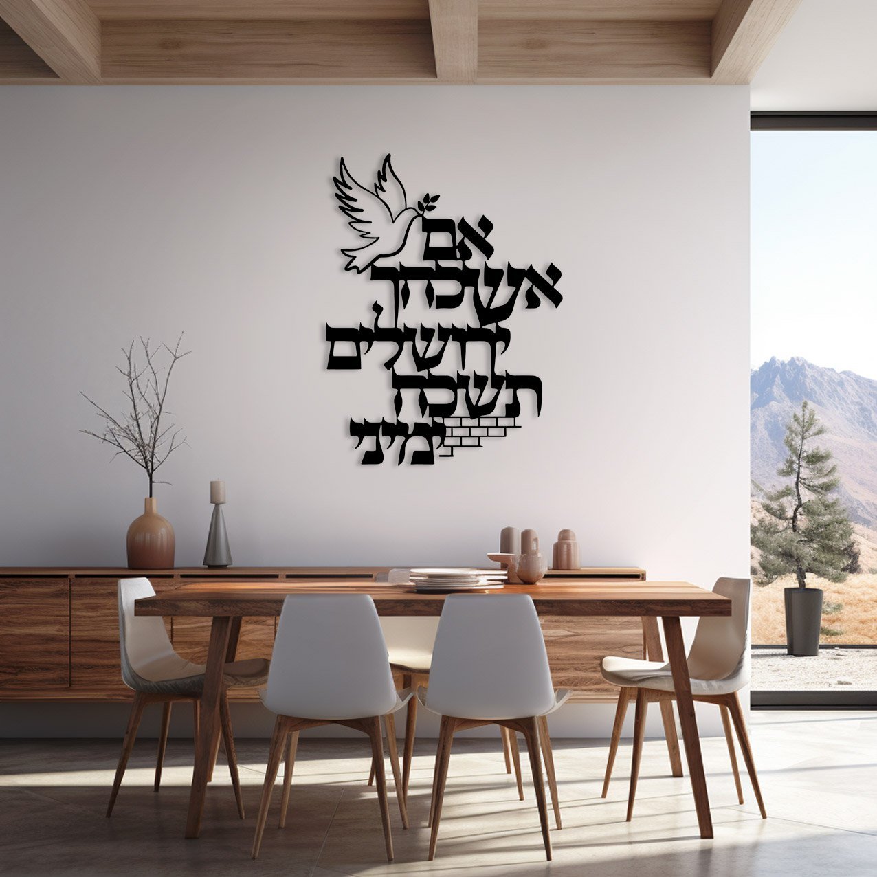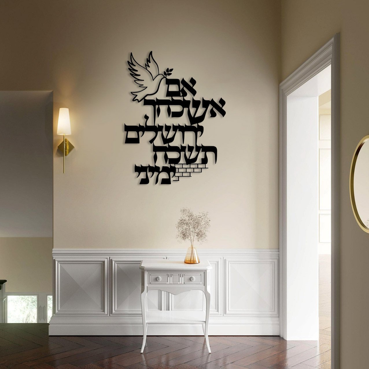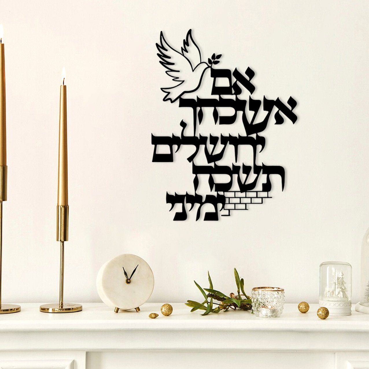 עיצוב קיר נפלא ממתכת עם הפסוק “אם אשכחך ירושלים תשכח ימיני”