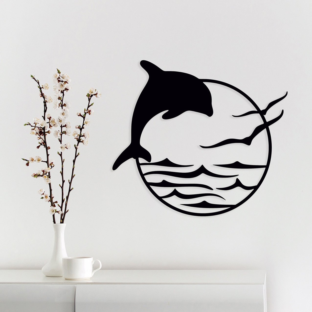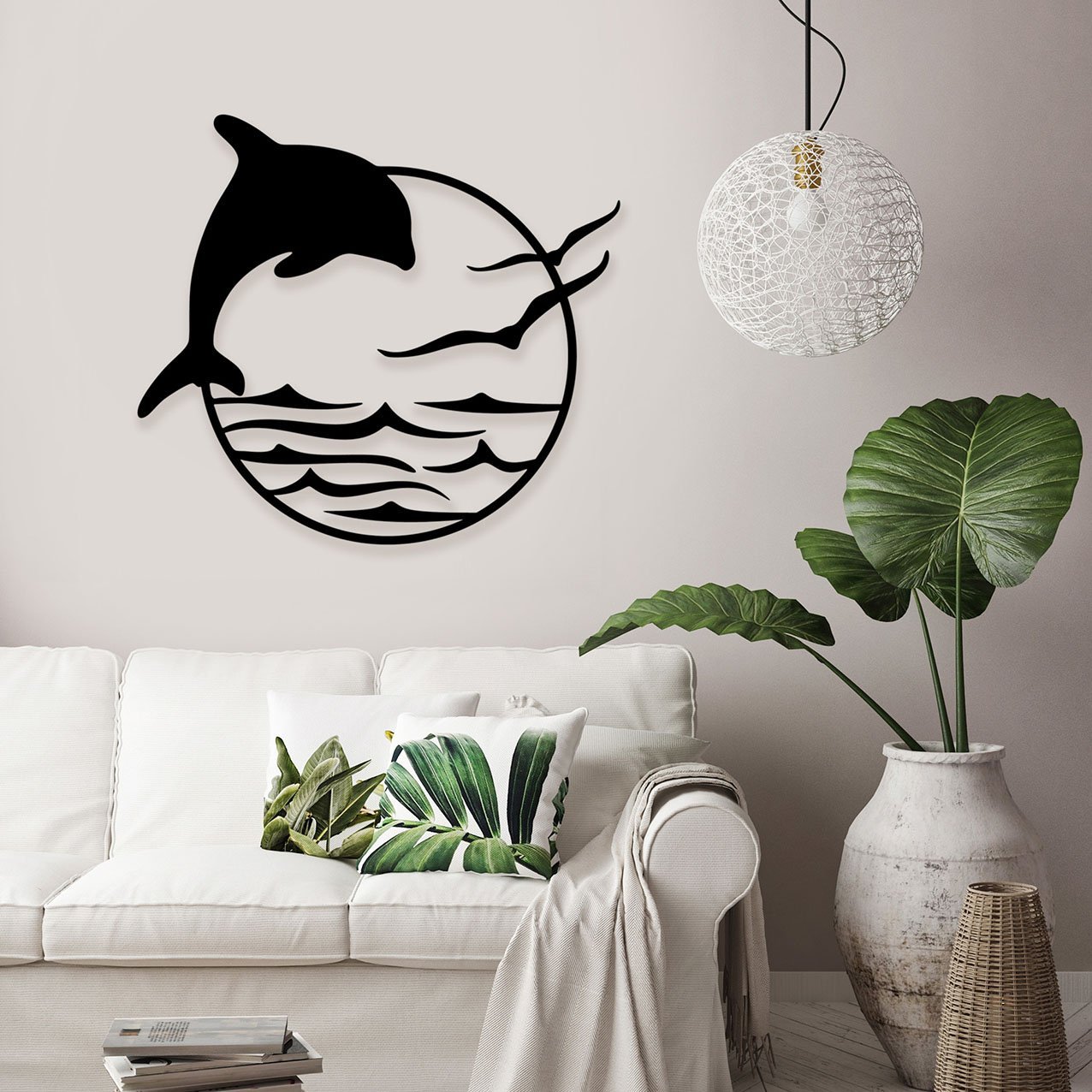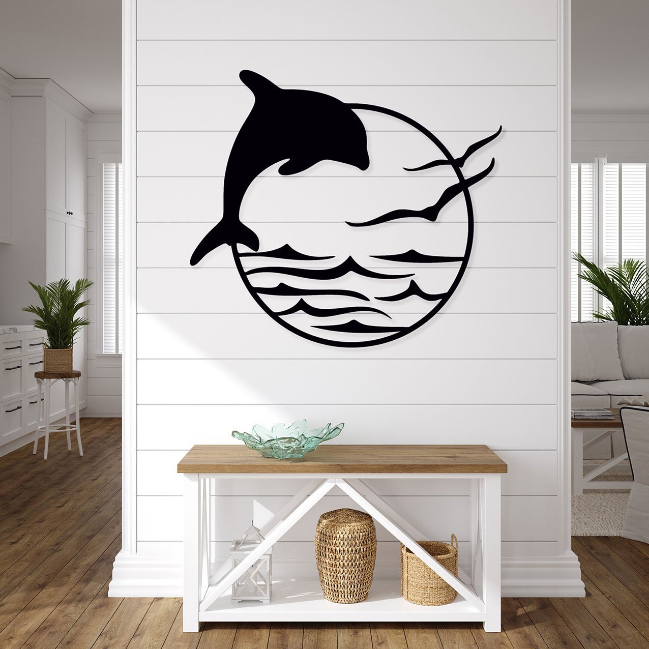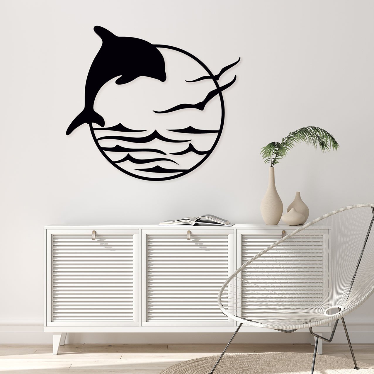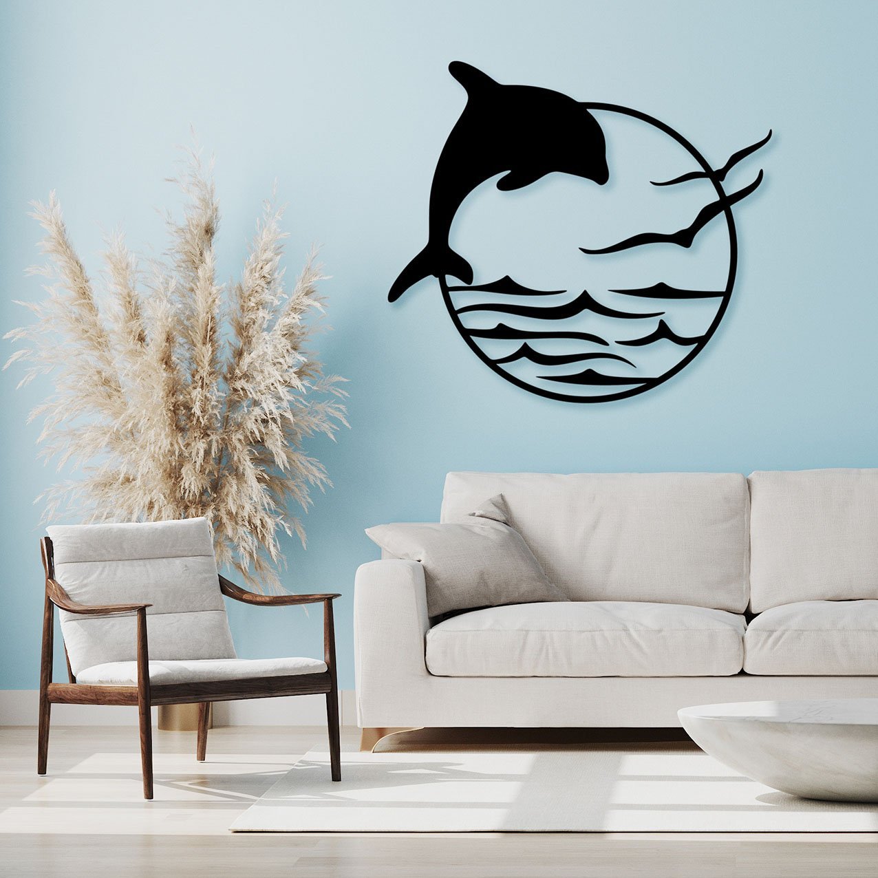 דולפין ושחפים עיצוב קיר ממתכת
