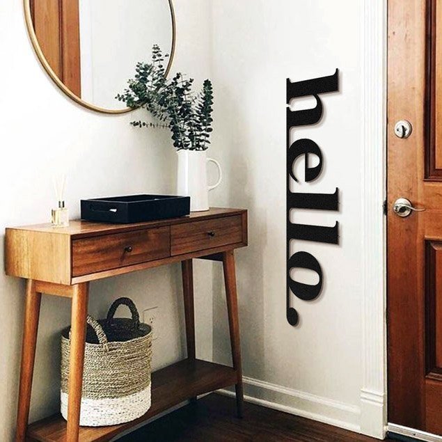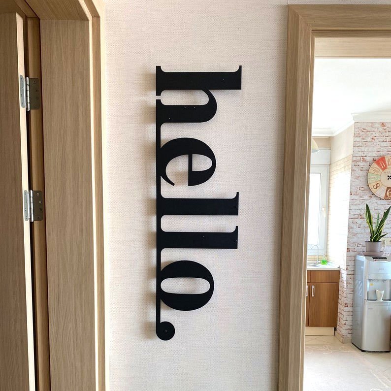 עיצוב קיר נפלא ממתכת עם חותם המילה הלו.
