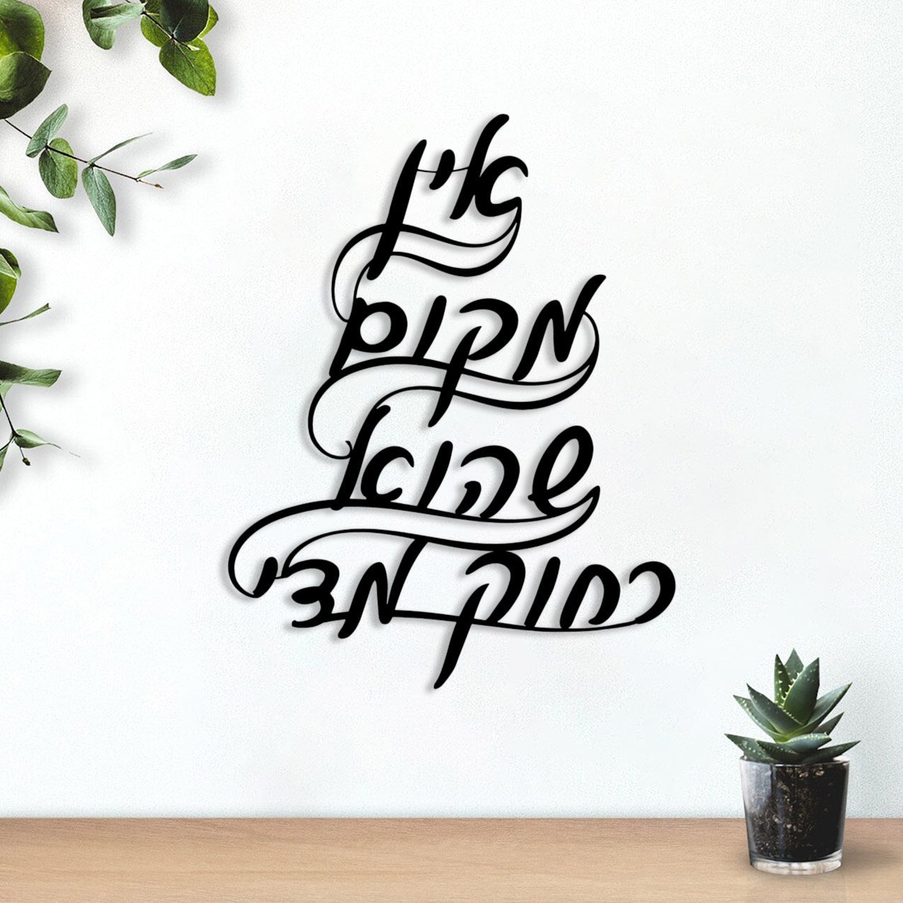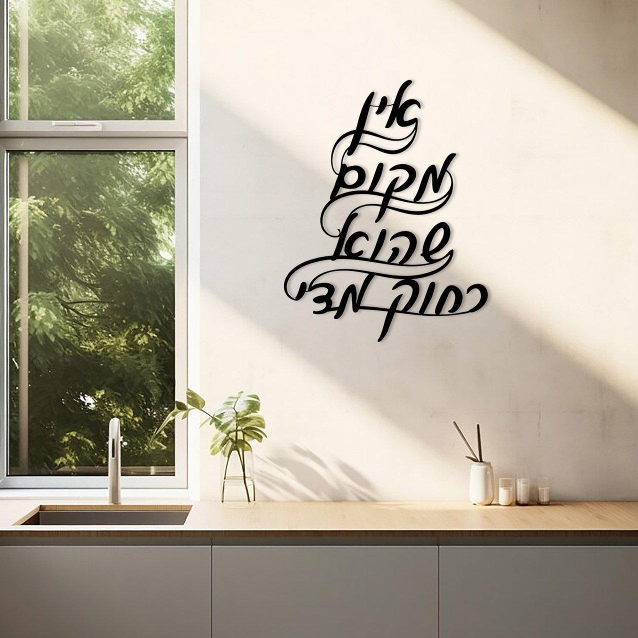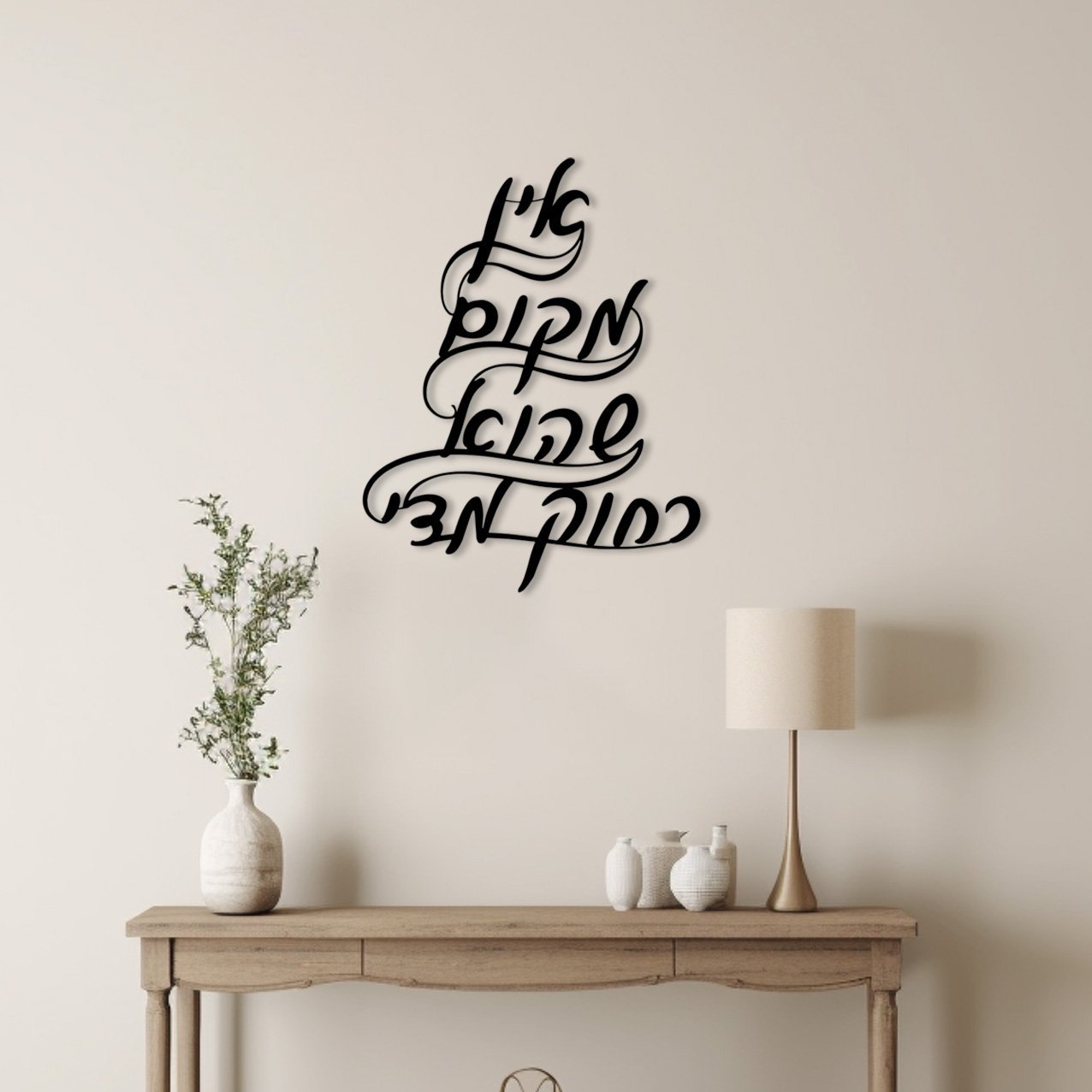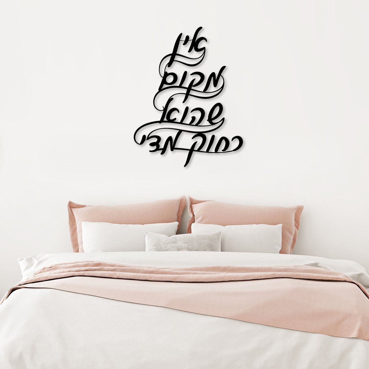 עיצוב קיר נפלא ממתכת עם המשפט “אין מקום שהוא רחוק מדי”, ששום מרחק פיזי לא יכול להפריד בין אנשים שאוהבים.