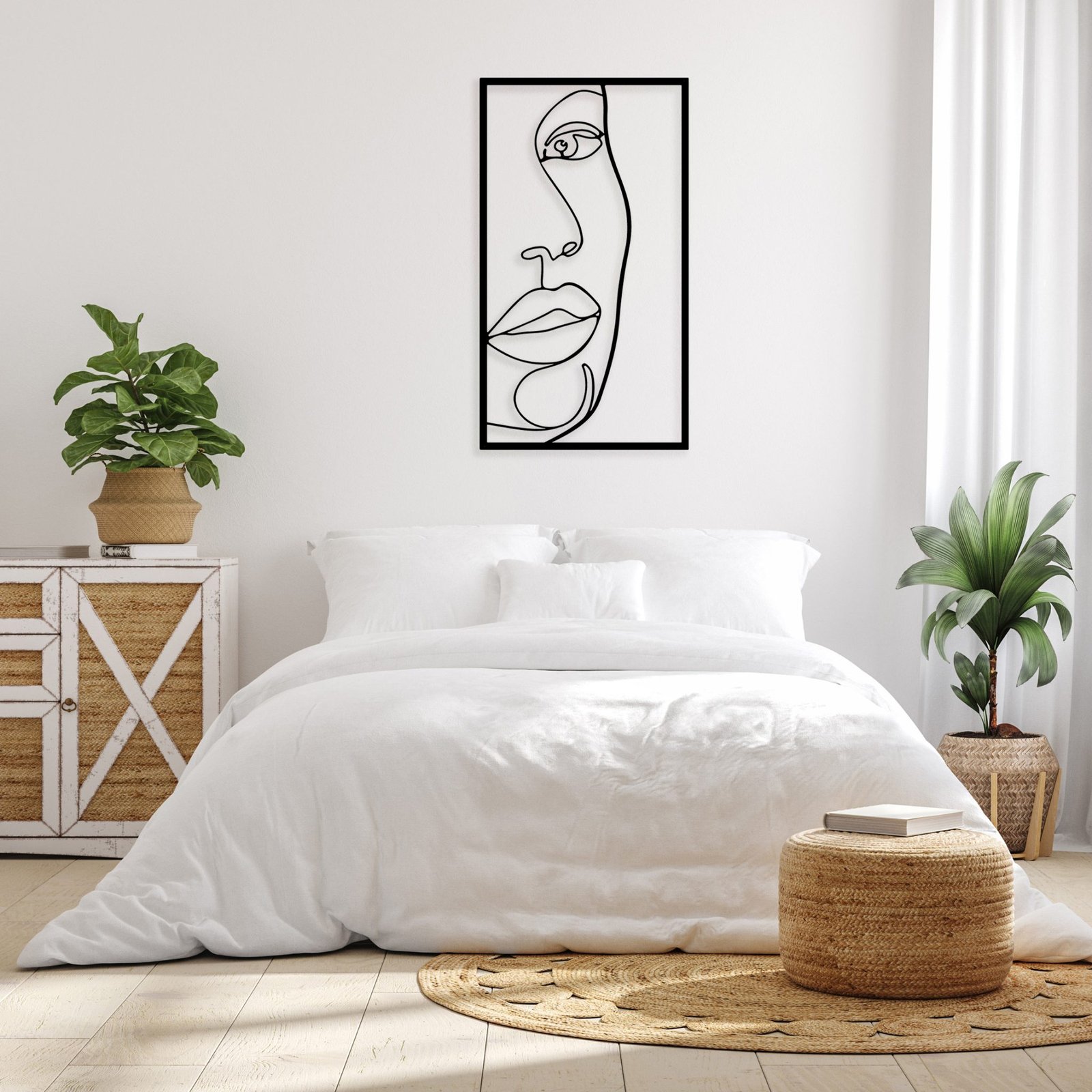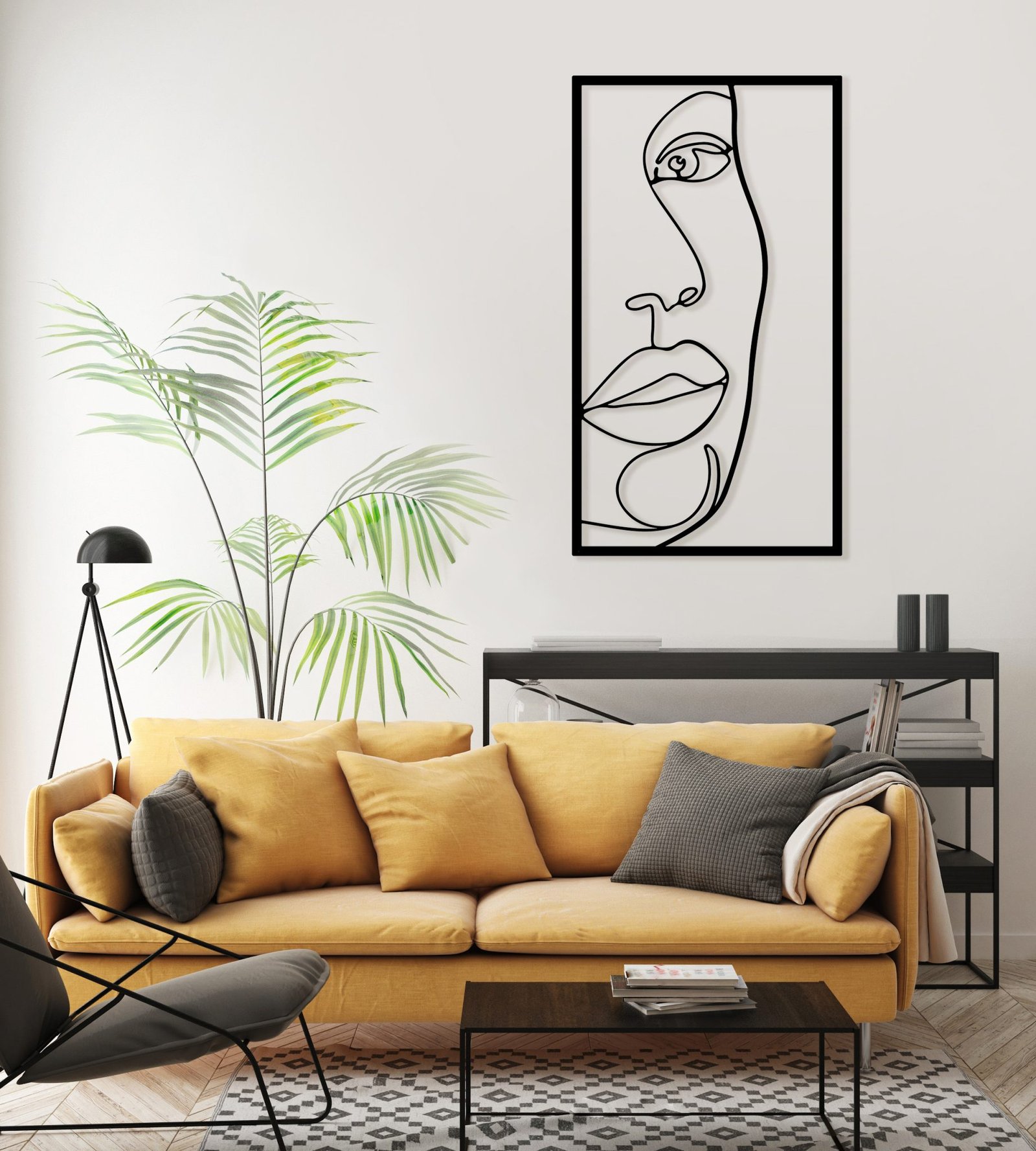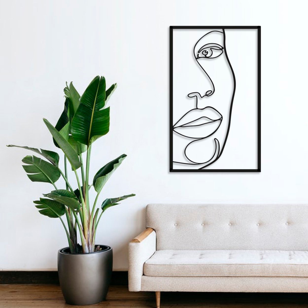 עיצוב קיר נהדר ממתכת איכותית של קווי פנים של אישה המתואר בקווי גוף מתמשכים,