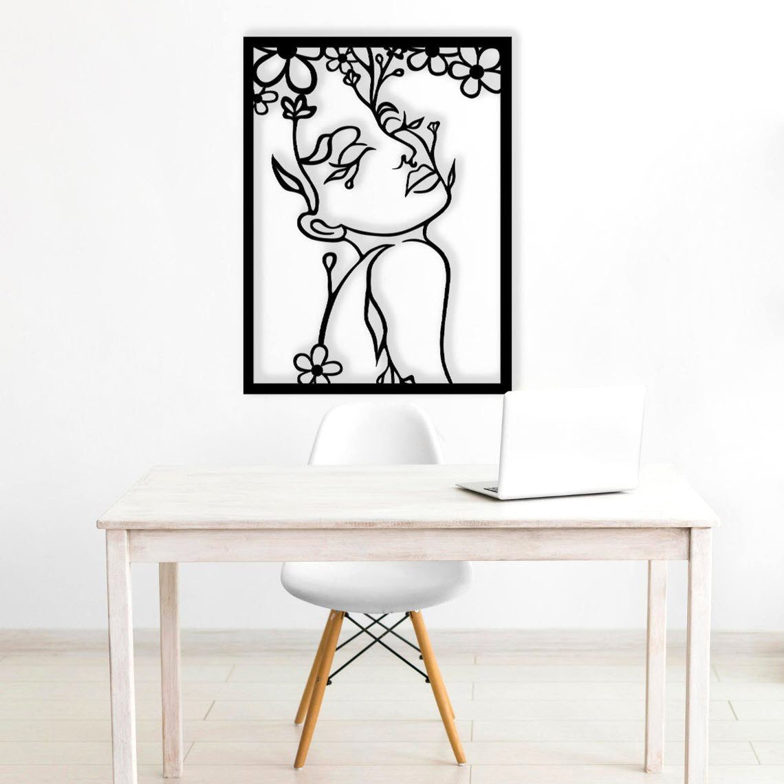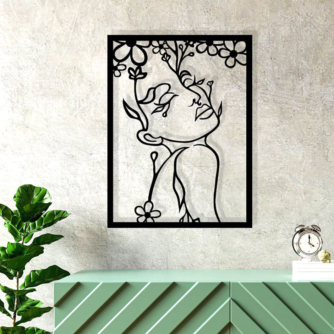 עיצוב קיר ואומנות ממתכת של פני אישה בפרחים!